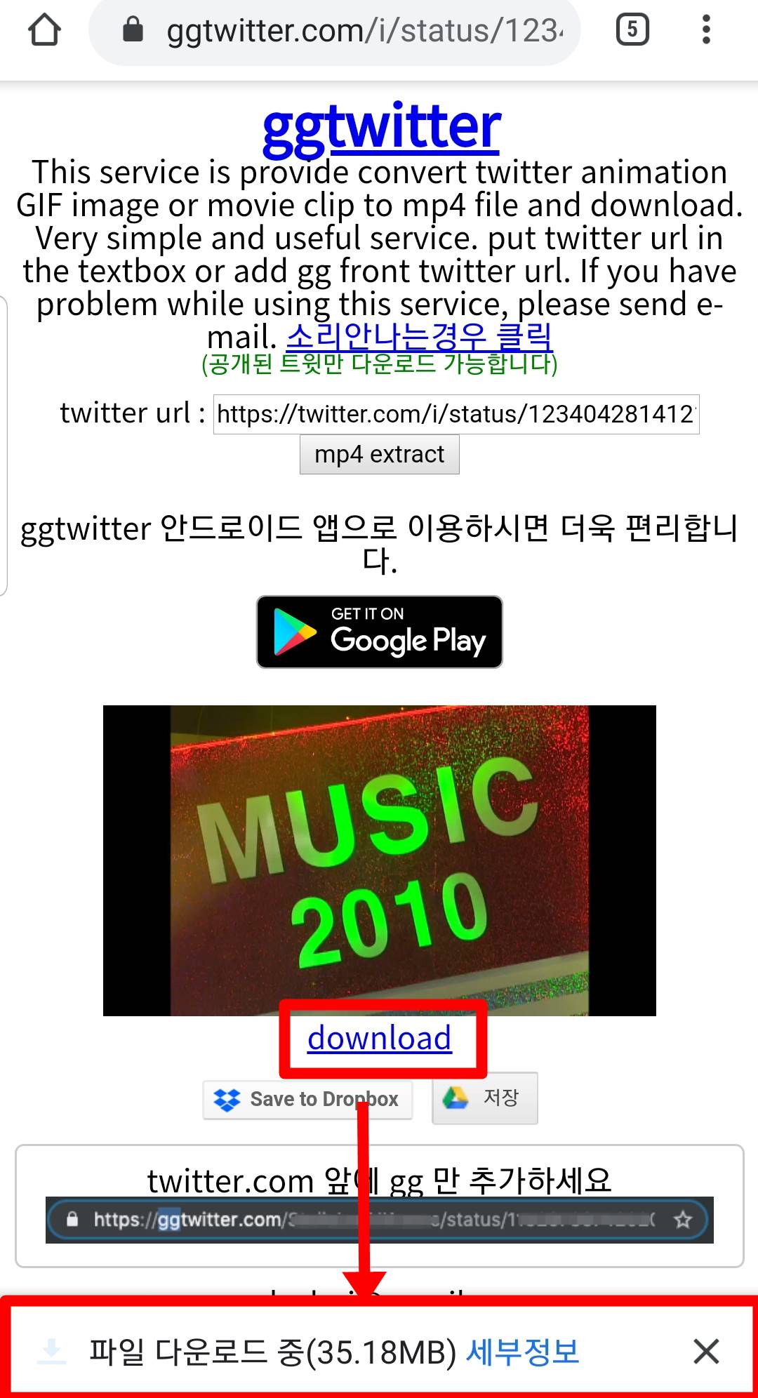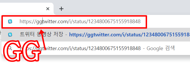 그 뒤 twitter 앞에 gg를 붙여넣어주고 사이트로 이동해줍니다. 어떤 영상이든 동일하게 하시면 됩니다.