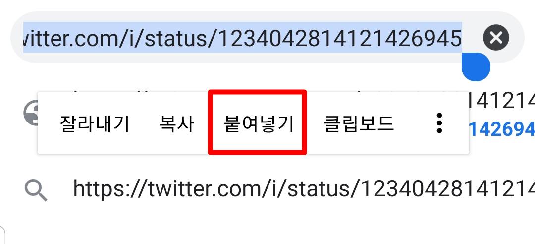 그다음은 인터넷 주소창에서 ctrl + v를 눌러주는 것입니다. 이것은 아시다시피 붙여넣기로 복사해두었던 트위터 동영상 주소가 표시되게 됩니다. 여기까지 만들어주시고 엔터는 누르지 말고 대기해주시길 바랍니다.