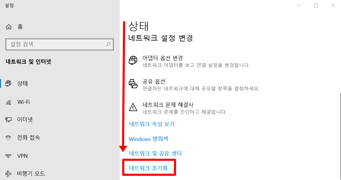네트워크 초기화로 인터넷 연결 재설정하기